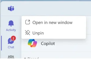 Benutzer haben die Möglichkeit, ihre Kernanwendungen – wie Chat, Teams und andere wichtige Apps – in separaten Fenstern zu öffnen, indem sie im Kontextmenü der App die Option „In neuem Fenster öffnen“ auswählen.