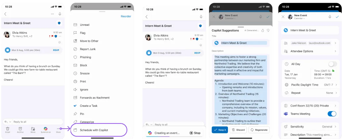 Copilot vereinfacht jetzt das Planen von Besprechungen direkt aus E-Mail-Verläufen.