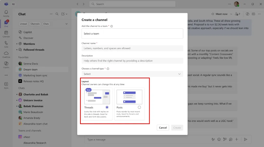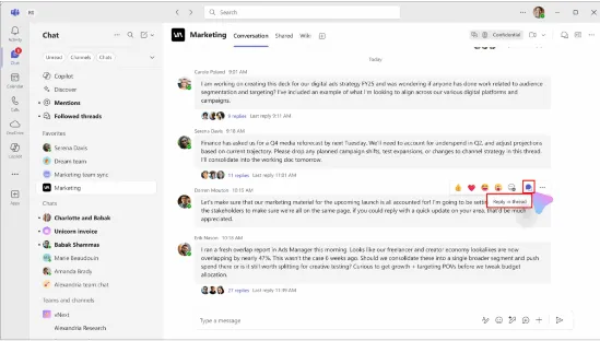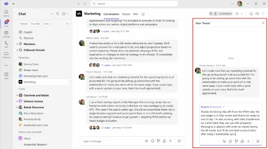 Neues „Threaded Channel“-Layout für Unterhaltungen in Kanälen